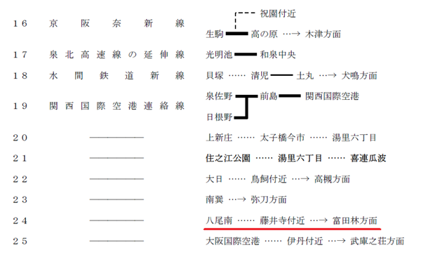 1989年5月31日の運輸政策審議会で「大阪圏における高速鉄道を中心とする交通網の整備に関する基本計画について」という長〜いタイトルの答申があります。この中の大阪近郊路線24番に八尾南~富田林が確認できます。