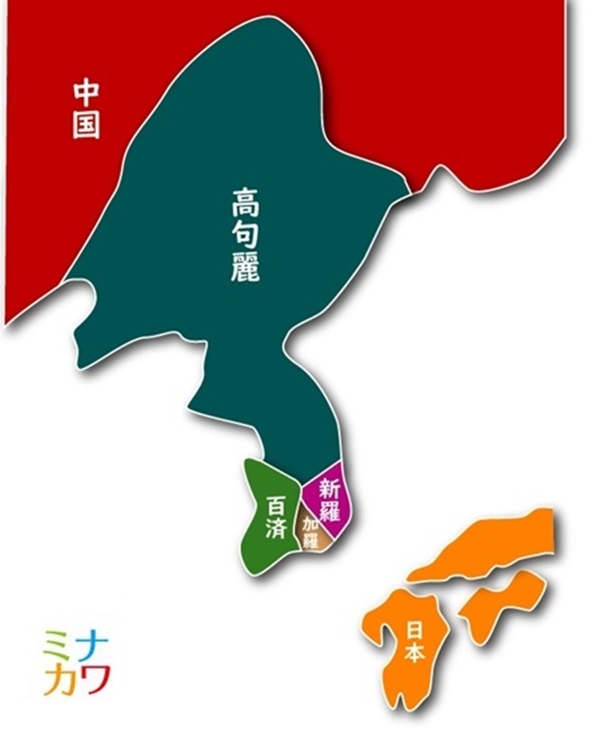 朝鮮半島は高句麗、新羅、百済がそれぞれ覇を競い、中国、日本は朝鮮半島へ影響力の浸透を図っていました。
