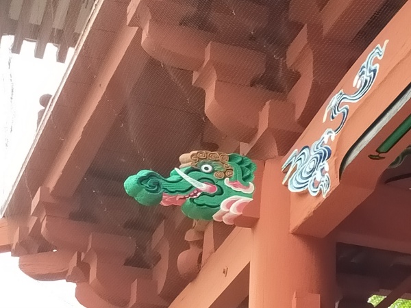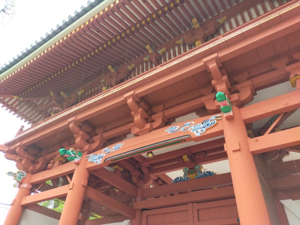 改修前と比べると、全体的にきれいな朱色に塗り直されています。剥げ落ちていた装飾もきれいに描き直されており、建立当時の姿が蘇っています。